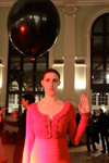 "Reenacting cultural leftovers" Reenacting No. I, ein dekadentes Bild in einem im Umbau befindlichen Friedrichstrassen-Laden mit Sekt, Lichtshow und einer Diva.
